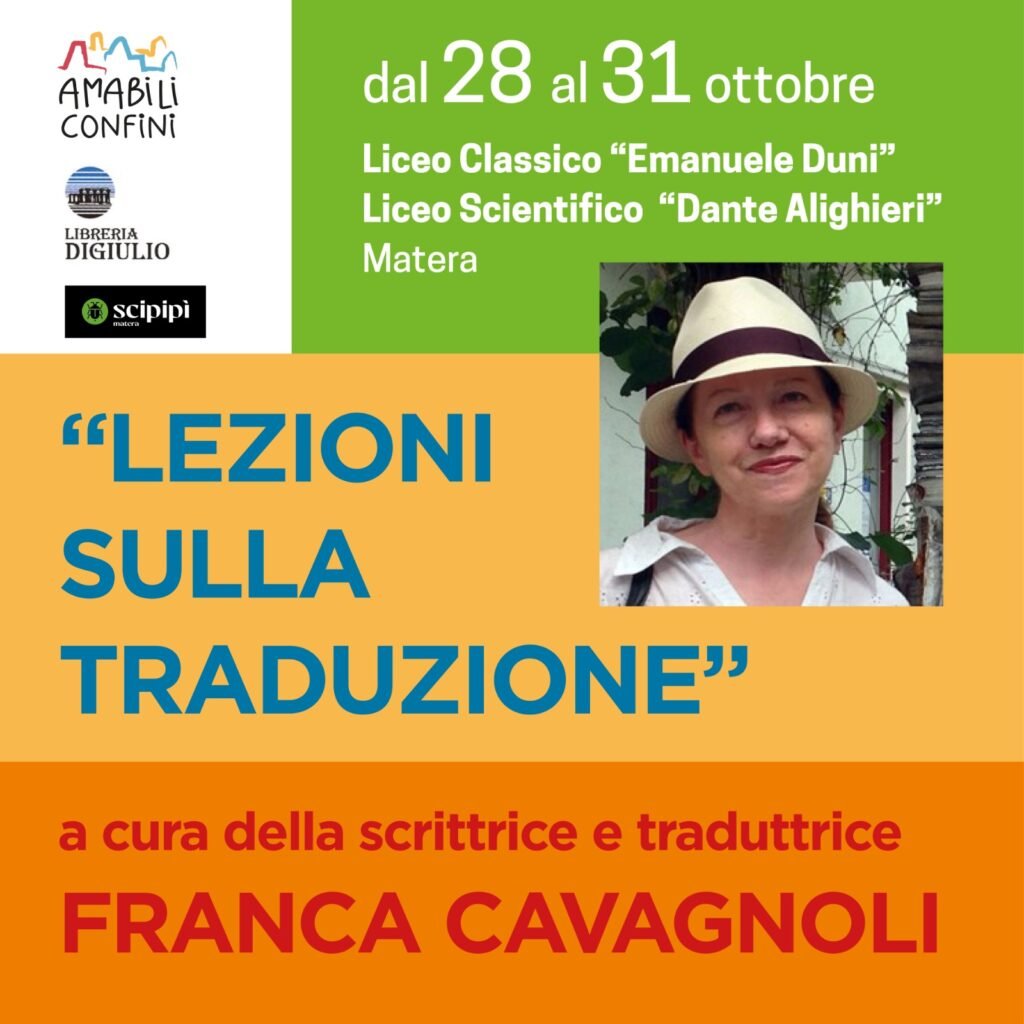 Gli studenti del Liceo classico “E. Duni”, del Liceo scientifico “Dante Alighieri”, del Liceo artistico “C. Levi” e dell’Istituto tecnico agrario “G. Briganti” di Matera, sono pronti per accogliere Franca Cavagnoli, tra le più importanti firme italiane della traduzione dall’inglese.
