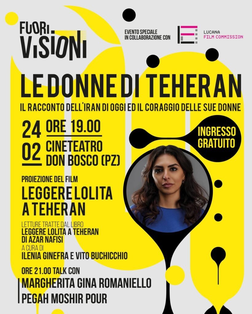 Il 24 febbraio 2025, presso il cineteatro Don Bosco di Potenza, alle ore 19, il festival del cinema Visioni Verticali presenta, nell’ambito di Fuori Visioni, in collaborazione con la Lucana Film Commission, il film Leggere Lolita a Teheran di Eran Riklis. Ad inaugurare la serata saranno le letture dal romanzo di Azar Nafisi a cura degli attori Ilenia Ginefra e Vito Buchicchio. Dopo la proiezione l’attivista iraniana Pegah Moshir Pour e Margherita Gina Romaniello, Presidente della Lucana Film Commission, converseranno sull’Iran e il coraggio delle donne, tra l’eredità del passato e le nuove generazioni.