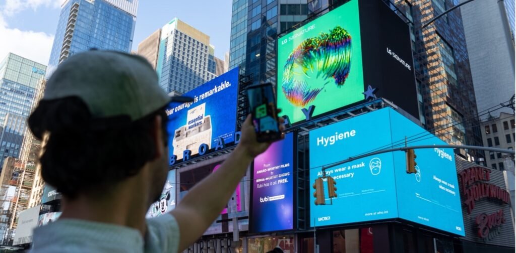 Newyorkesi e londinesi in Times Square e Piccadilly Circus vengono catturati da un’esperienza immersiva d’arte 3D sugli enormi schermi ad alta definizione di LG nelle due città internazionali. Il video di 75 secondi è una straordinaria opera d’arte che celebra il rapporto tra arte e tecnologia, la connessione che è al centro della filosofia di LG SIGNATURE, Art Inspires Technology, Technology Completes Art.