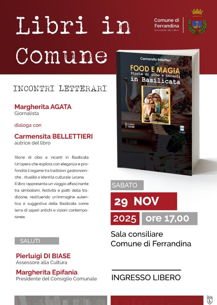 Il Comune di Ferrandina ospita un nuovo appuntamento di Libri in Comune, che si terrà sabato 29 novembre 2025 alle ore 17.00 presso la Sala Consiliare del Comune.