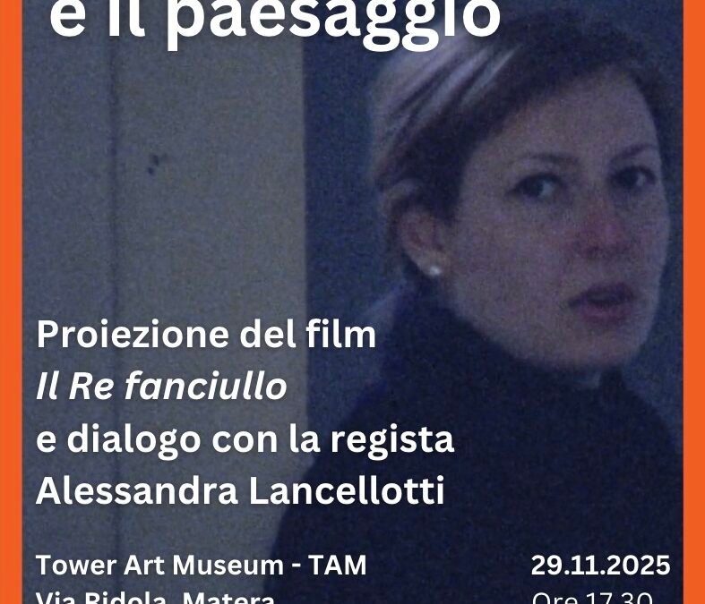 Il 29 novembre alle ore 17.30, presso il TAM – Tower Art Museum in via Ridola, a Matera, il Gruppo FAI Giovani di Matera dedicherà una intera serata al rapporto tra cinema arte e paesaggio attraverso un viaggio dentro il cinema di Alessandra Lancellotti, regista di origini lucane che ha fatto del paesaggio – naturale, urbano e interiore – il filo conduttore della sua produzione. Verranno presentati estratti da alcuni suoi lavori e in particolare da “Il re fanciullo”, in un percorso che consona con la visione del FAI, volta a custodire e valorizzare il patrimonio culturale e ambientale italiano. La proiezione sarà arricchita dal commento dal vivo della regista, che guiderà il pubblico in un dialogo intimo con le immagini, trasformando la visione in un’esperienza di condivisione e di riscoperta del nostro paesaggio, reale e simbolico.