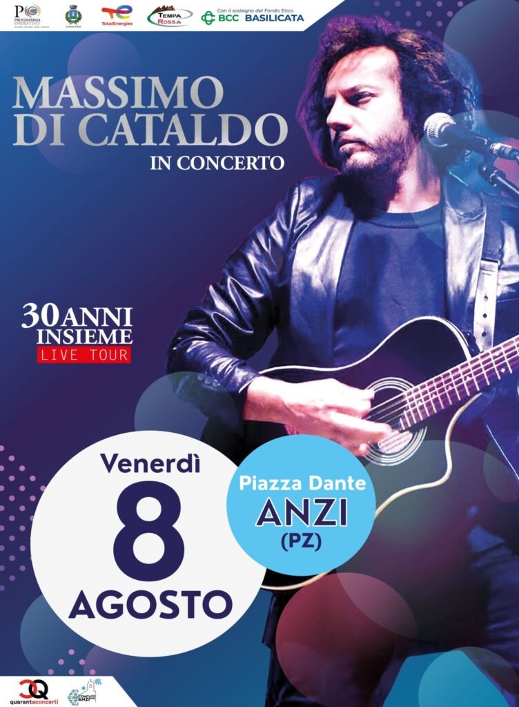 Venerdì 8 agosto alle 21.30, Massimo Di Cataldo porterà la sua voce intensa e la sua anima pop melodica nel cuore della Basilicata. Il cantautore romano, celebre per le sue ballate degli anni Novanta e Duemila, arriva ad Anzi con la rassegna “30 Anni Insieme Tour”, un progetto che celebra l’intera carriera artistica dell’artista. Al centro dello spettacolo, un racconto sonoro che parte dal debutto del 1995 con “Che sarà di me” al Festival di Sanremo e attraversa successi come “Se adesso te ne vai”, “Come sei bella” e “Come il mare”.