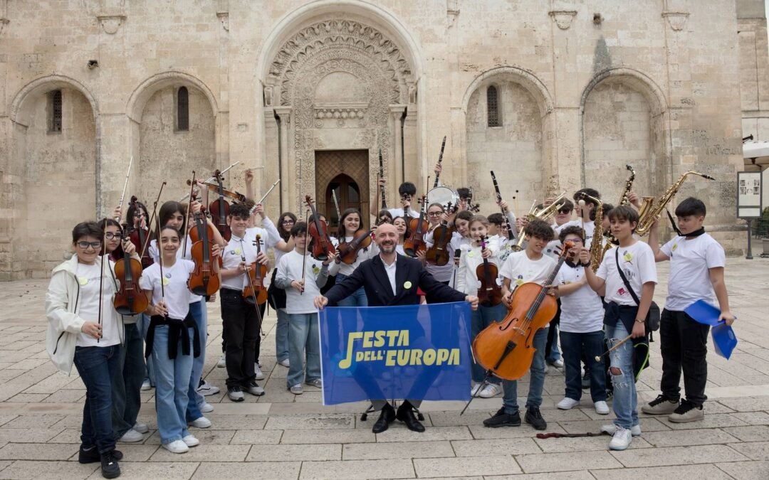 La prima orchestra per ragazzi ispirata ai valori dell’Europa è nata dalla sollecitazione dell’Istituto “Torraca  – Bramante” di estendere a tutti gli istituti comprensivi della città l’omaggio che da cinque anni veniva fatto all’Europa in questa giornata da parte dei propri studenti. Nei giorni precedenti i talentuosi ragazzi si sono incontrati e trasformati in una vera orchestra dietro la guida del prof. Filippo Carretta, ospiti della sala prove dell’Orchestra Sinfonica di Matera.