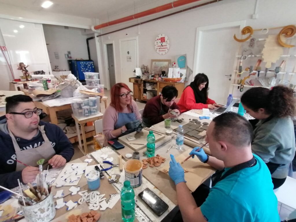 Accoglienza, integrazione, solidarietà: nel laboratorio di artigianato solidale della Cooperativa Oltre l’Arte si respira tutto questo. Merito di Uccio Santochirico, maestro cartapestaio che ha realizzato il Carro della Bruna della scorsa edizione della festa, che dirige un laboratorio accogliendo quindici ragazzi diversamente abili. Ogni mattina, nella sede di via Carlo Levi 2 a Matera, sono al lavoro in un clima sereno, senza barriere né fisiche né mentali, uniti dalla creatività. C’è tanto entusiasmo, voglia di raccontare e raccontarsi in un luogo che diventa la testimonianza di un qualcosa che dovrebbe sempre accadere: una collaborazione alla pari tra normodotati e diversamente abili, in uno scambio che arricchisce reciprocamente. È una lezione di umanità quella di Uccio che ai suoi ragazzi permette una quotidianità in cui sono protagonisti in positivo: ognuno ha un ruolo, ognuno è importante. E che sia una carezza di incoraggiamento o allacciare le scarpe che si sono slacciate a uno dei ragazzi, Uccio non si tira indietro ma dimostra anche nei piccoli gesti di tenerci davvero ai suoi collaboratori speciali.