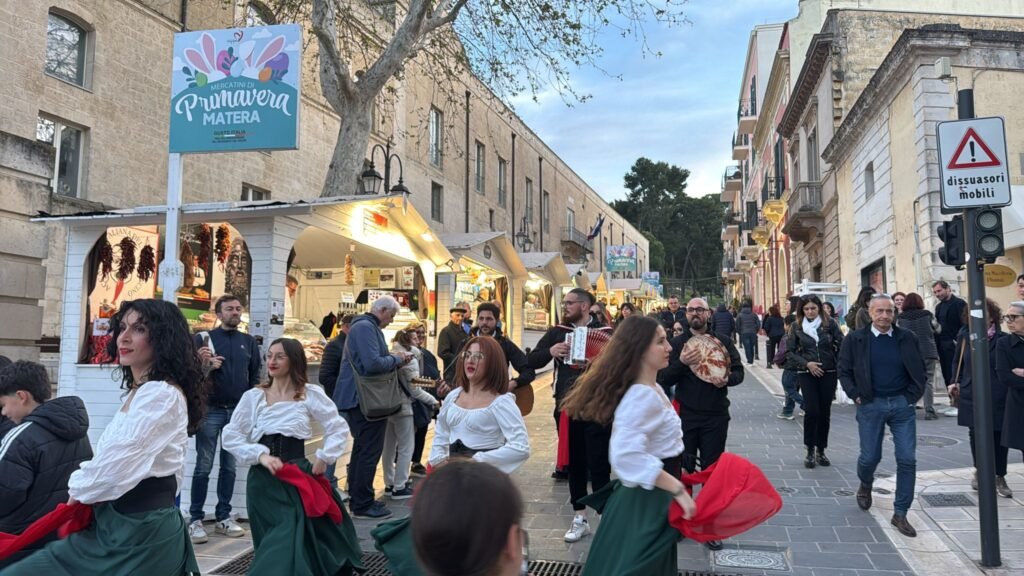 Zingare Lucane e Lucanicus Folk Band di nuovo insieme nella città dei Sassi per animare i Mercatini di Primavera di Gusto Italia in tour che fino a lunedì potranno essere visitati in via La Vista.