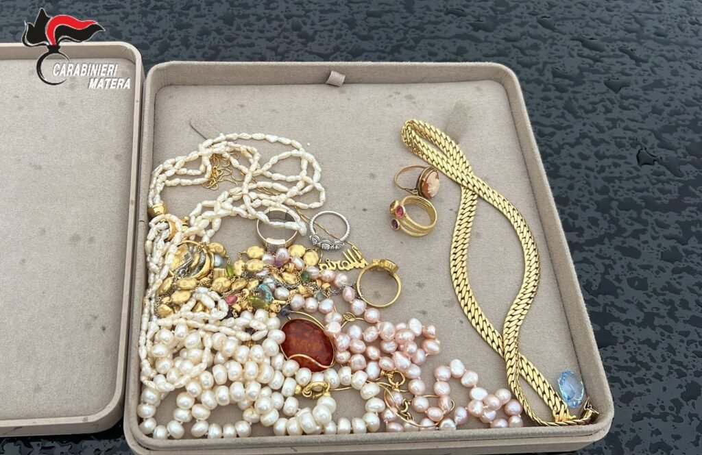 I due soggetti, dopo l’acquisizione di ulteriori elementi sulle loro responsabilità, sono stati dichiarati in stato di arresto e trasferiti nella locale Casa Circondariale, su disposizione della Procura della Repubblica di Matera, mentre gli oggetti preziosi recuperati, del valore complessivo di circa 10.000 euro, sono stati restituiti alla vittima.