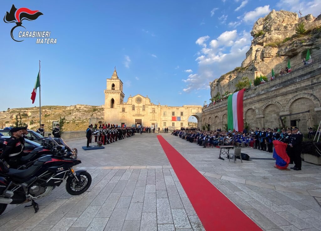 A Matera, nel tardo pomeriggio, nella suggestiva cornice di Piazza San Pietro Caveoso, centro del rione Sassi affacciato sulla gravina materana, ha avuto luogo la celebrazione del 211° Anniversario della Fondazione dell’Arma. La manifestazione, presieduta dal Comandante Provinciale, Colonnello Giovanni RUSSO, si è svolta con la partecipazione di S.E. Cristina FAVILLI Prefetto di Matera, di Autorità religiose, civili e militari locali e dei Sindaci della provincia di Matera.