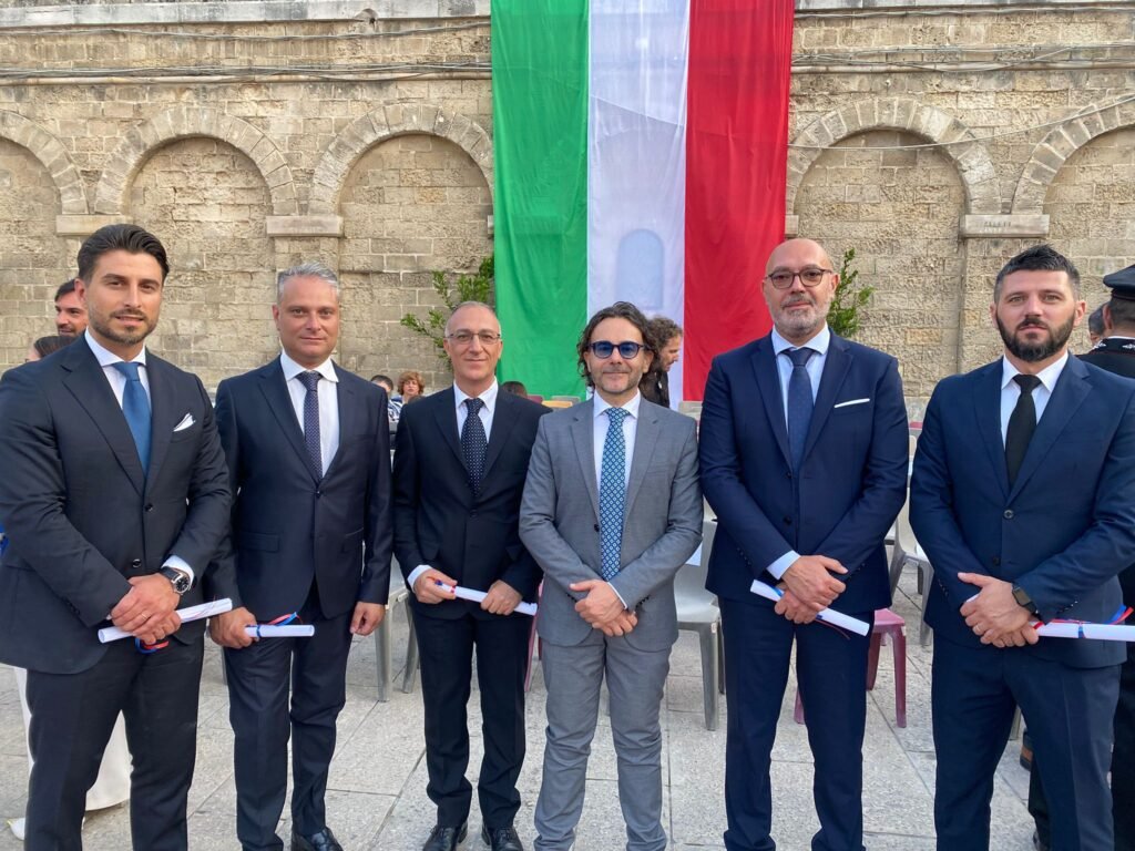 – al Maresciallo Maggiore Antonio FIOTTA, al Maresciallo Ordinario Luigi GABRIELI, al Brigadiere Capo Michele DI MARO, all’Appuntato Scelto Qualifica Speciale Francesco DI LENA e al Carabiniere Scelto Alberto ROMANAZZO, è stato consegnato dal Commissario Straordinario del Comune di Matera, Prefetto Raffaele RUBERTO e dal dott. Michele LORUSSO, direttore dell’Ispettorato Territoriale del Lavoro di Potenza-Matera, l’encomio Semplice del Comandante del Comando Carabinieri Tutela del Lavoro di Roma, conferito poiché in qualità di Comandante e addetti al Nucleo Ispettorato del Lavoro di Matera, evidenziando lodevole senso del dovere ed elevata professionalità, partecipavano a complessa attività investigativa che consentiva di disarticolare un gruppo criminale dedito alla commissione dei reati di intermediazione illecita e sfruttamento del lavoro nel settore agricolo. L’operazione si concludeva con l’esecuzione di 9 misure cautelari, di cui una in carcere e 8 agli arresti domiciliari per associazione per delinquere finalizzata allo sfruttamento lavorativo e discarica non autorizzata di rifiuti speciali in concorso, il sequestro preventivo di 3 immobili adibiti a dormitorio per mancanza di requisiti igienico sanitari, nonché consentiva di liberare dallo sfruttamento numerosi braccianti stranieri (Policoro, Scanzano Jonico, Pisticci e Metaponto, 19 luglio 2022 – 2 ottobre 2023);