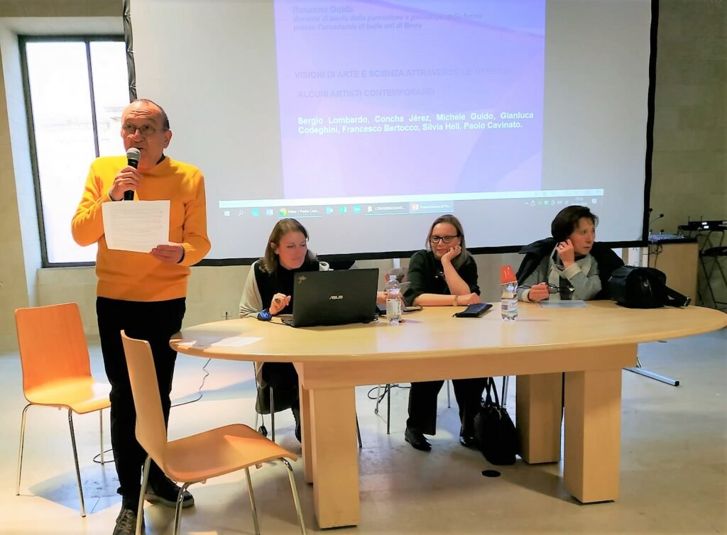 Argomento della conferenza è stato “Visioni di arte e scienza attraverso le opere di alcuni artisti contemporanei: Sergio Lombardo, Silvia Hell, Gianluca Codeghini, Paolo Cavinato, Michele Guido, Concha Jérez, Francesco Bertocco”.
