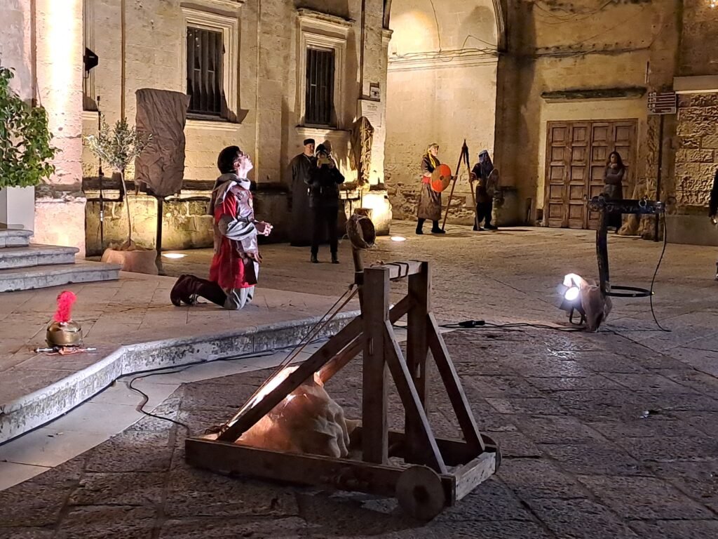 Protagonisti gli attori della compagnia lo Stormo di Roma e del Teatro Attico di Gravina in Puglia con la collaborazione delle associazioni di rievocatori storici “I Brettii della Calabria” e il Gruppo Storico Normanno da Altamura, le associazioni di volontariato “Ordine di Malta”, le associazioni di Protezione Civile “L’Addolorata” e di “Vaglio di Basilicata” e l’associazione nazionale Polizia di Stato, e tra i rievocatori storici l’Omnes Leones Puglia.