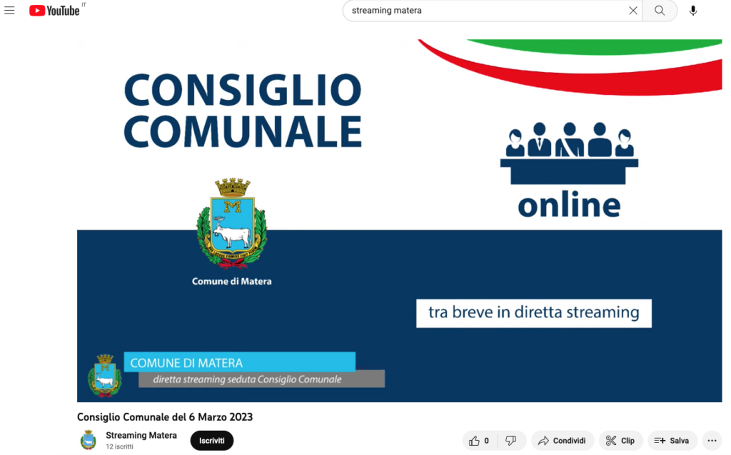 Matera: le dirette del Consiglio comunale sono da sempre anche sul canale YouTube