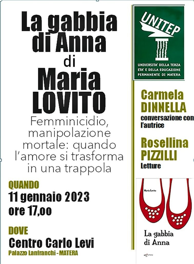 Mercoledì 11 gennaio 2023 alle ore 17,00 presso il Centro Carlo levi di Matera si parlerà di “Femminicidio, manipolazione mortale: quando l’amore si trasforma in una trappola” con l’avvocato Maria Lovito .
