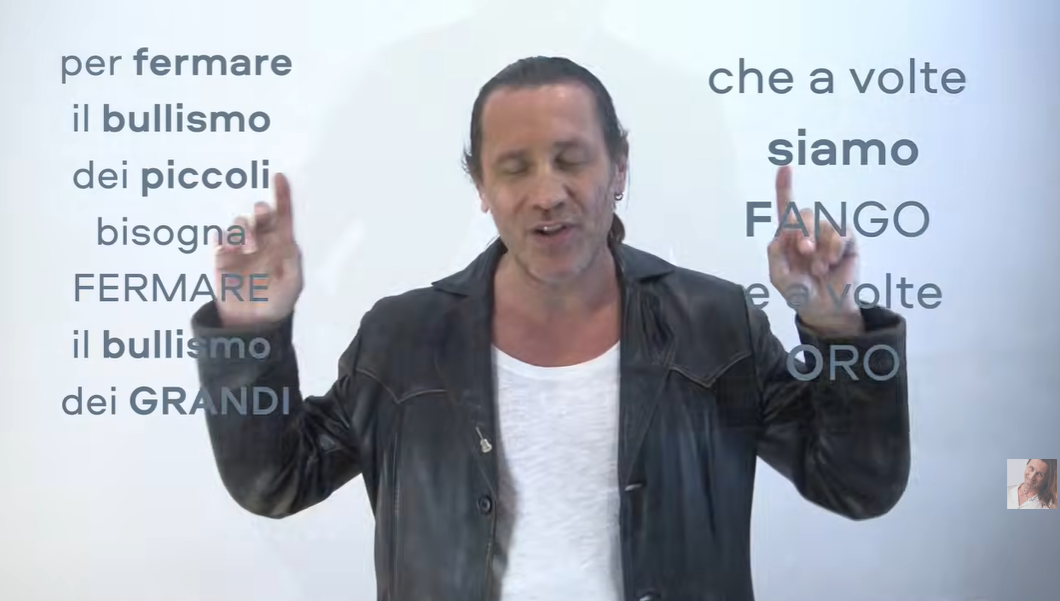 “La canzone nasce da ferite che non dimentichi ma superi” ,ha scritto in un post si Facebook. Superi gli insulti, 3 contro 1, “zitto o sono botte”, attacchi di panico, sguardo perso, notti a piangere, voglia di scappare, anestetizzare il dolore, credere a chi ti dice “non vali”. La verità è che tutti siamo vittime e bulli. Perciò canto: “Bisogna fermare il bullismo dei grandi”. Un verso dice: “Le emozioni non le puoi creare con l’intelligenza artificiale.” Non è contro il progresso ma in difesa dell’esperienza umana. La forza nasce da ciò che vivi, cadute ed errori compresi. Se deleghiamo tutto all’algoritmo perdiamo “il sentire sulla pelle””.