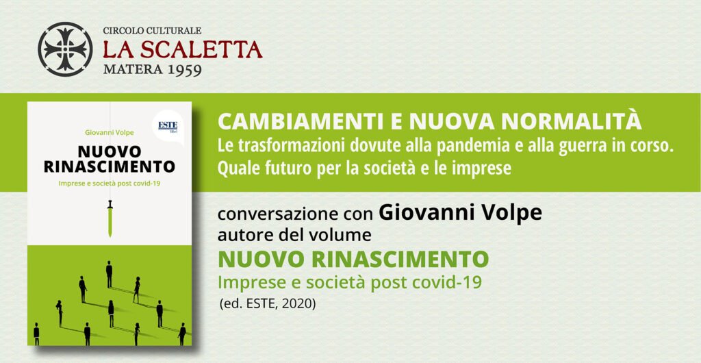 Nuovo Rinascimento, imprese e società post covid-19. E’ il titolo del libro scritto da Giovanni Volpe, edito da Este, che indaga sugli scenari futuri e sui cambiamenti generati, in campo economico e sociale, dalla pandemia da coronavirus ma anche dalle conseguenze della guerra in Ucraina.