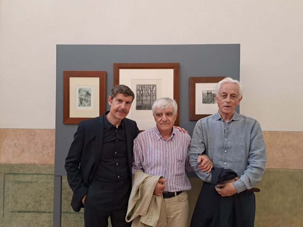 “Quando mi è stata proposta la mostra da un socio del Circolo sono rimasto un po’ interdetto, non mi aspettavo questo invito. Mi ha fatto piacere però nello stesso tempo mi ha creato un po’ di scombinamento”, ha confidato l’artista e incisore che, pluripremiato e noto a livello internazionale, è da sempre molto riservato. Non ama i riflettori o le luci della ribalta, pur avendo un curriculum artistico invidiabile. Grazie al Circolo La Scaletta presieduto da Francesco Paolo Di Pede, le sue opere – acqueforti, incisioni e disegni – hanno trovato uno scrigno ideale nelle sale di Palazzo Malvezzi, in un interscambio di eleganza e bellezza.