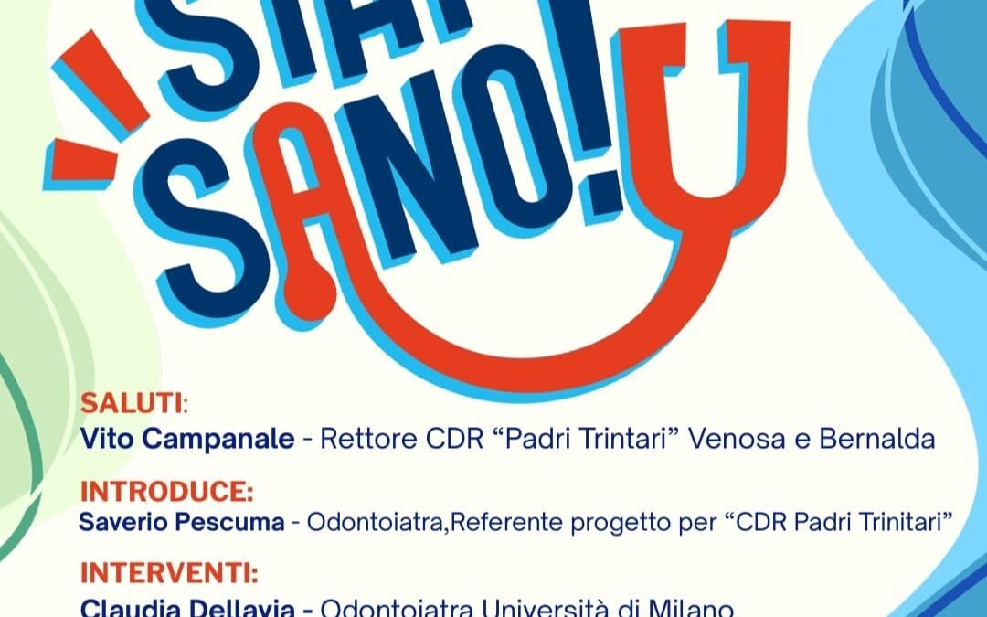 L’evento si aprirà alle ore 10 con i saluti del direttore dei Centri di riabilitazione dei Padri Trinitari di Venosa e Bernalda, Vito Campanale, del referente del progetto, l’odontoiatra Saverio Pescuma e con gli interventi di professionisti dell’Università degli Studi di Milano, tra cui odontoiatri, ortottisti, nutrizionisti ed esperti di Medicina dello Sport.
