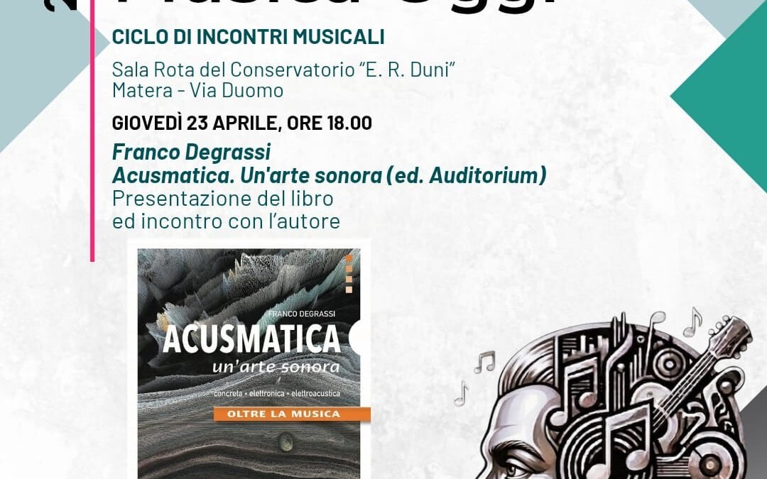 Protagonista dell’incontro sarà Franco Degrassi, autore del volume “Acusmatica. Un’arte sonora” (ed. Auditorium), che verrà presentato al pubblico in un dialogo aperto tra riflessione teorica e ascolto. L’incontro si configura come un’occasione di approfondimento sulle nuove prospettive della musica elettroacustica e sulle trasformazioni radicali dell’esperienza sonora contemporanea.