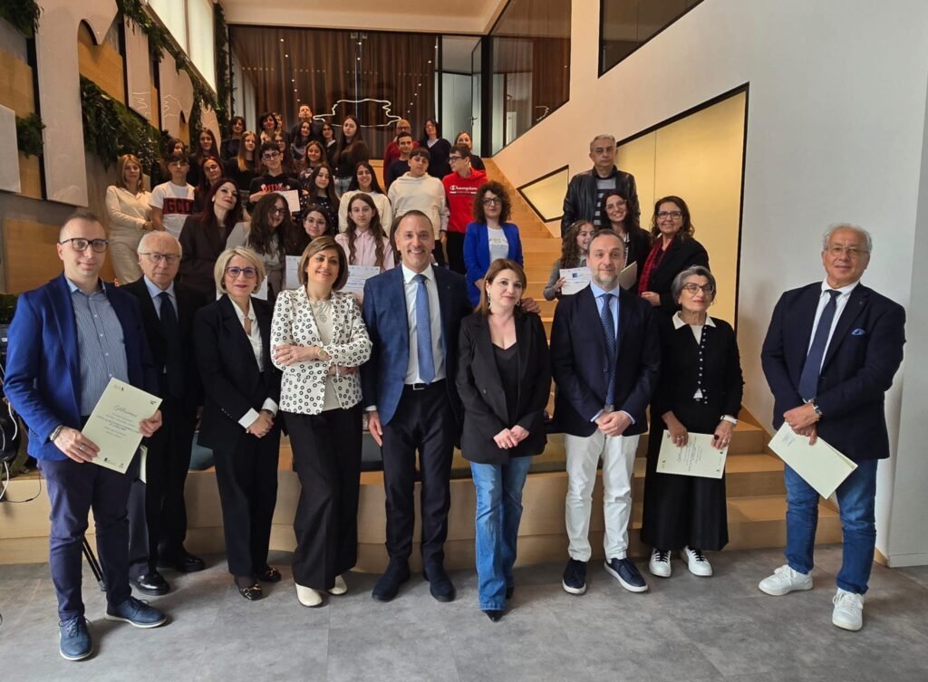 Rocco Franciosa, presidente Ente Pro Loco Basilicata Aps, Gerardo Larocca, presidente Anci Basilicata, Nino Cutro, presidente associazione “Il cielo nella stanza”, Maria Teresa Romeo, vice presidente Ente Pro Loco Basilicata Aps, Assunta Mitidieri, presidente Corecom Basilicata e Mario Polese, consigliere della Regione Basilicata. I vincitori regionali del Concorso nazionale Eplibriamoci edizione 2026 sul tema “Lotta al Bullismo e Cyberbullismo” sono Salvatore Calabrese dell’Istituto Comprensivo “Ferrara – Marottoli” di Melfi per la sezione Under 14 e per la sezione Opera Inedita Francesca Caputo di San Chirico Raparo che concorerrano per la premiazione finale in programma il 7 maggio prossimo a Roma presso il Senato della Repubblica. Mentre Miriana Di Stasi dell’Istituto Comprensivo “Pitagora” di Bernalda è la vincitrice della sezione scuola elementare. Nel corso della cerimonia di premiazione promossa da Ente Pro Loco Basilicata con il sostegno del fondo etico della Bcc Basilicata ed il patrocinio di Regione Basilicata, Apt Basilicata, Corecom Basilicata e Anci Basilicata è stata presentata l’opera “Libertà” dedicata al tema annuale del Concorso nazionale Eplibriamoci realizzata da Maria Teresa Romeo in arte Oemor che ringraziamo per la preziosa collaborazione. Il Presidente regionale Ente Pro Loco Basilicata Rocco Franciosa nel suo intervento ha ringraziato i dirigenti scolastici e gli insegnanti degli istituti scolastici lucani per la partecipazione ed ha rivolto un plauso a tutti gli studenti che hanno realizzato gli elaborati ed in particolare ai vincitori che hanno egregiamente centrato la tematica offrendo importanti spunti di riflessione. La partecipazione delle istituzioni, del mondo della scuola e del terzo settore, unitamente al sostegno della Bcc Basilicata – ha concluso il presidente Franciosa – rappresenta la via da seguire per lavorare sinergicamente offrendo un contributo a debellare il fenomeno del bullismo e del cyberbullismo, anche nelle nostre comunitá, attraverso iniziative di sensibilizzazione come quella promossa dalla Rete Epli. Ai partecipanti ed ai vincitori sono giunti i complimenti dei relatori Maria Rosaria Costa vice direttrice vicaria della Bcc Basilicata, Gerardo Larocca, presidente Anci Basilicata, Nino Cutro, presidente associazione “Il cielo nella stanza”, Assunta Mitidieri, presidente Corecom Basilicata e Mario Polese, consigliere della Regione Basilicata, primo firmatario della legge regionale n 43 del 2018 (Disciplina degli interventi regionali in materia di prevenzione e contrasto al fenomeno del bullismo e cyberbullismo), il quale ha dichiarato “con i loro elaborati gli studenti hanno dato sostanza ai commi della legge, dimostrando che la Basilicata non è solo una terra di tradizioni antiche, ma un laboratorio di modernità civile”.