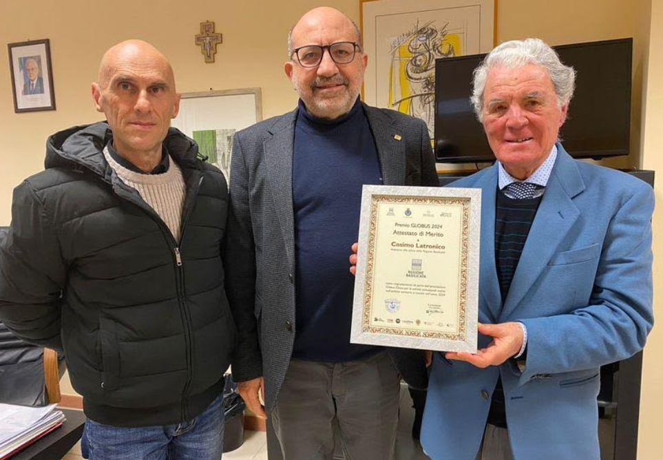 All’assessore Latronico è stato consegnato un attestato di merito come ringraziamento da parte dell’associazione Globus onlus, (organizzatrice del Premio), “per le attività svolte nell’ambito sanitario e sociale nell’anno 2024”.