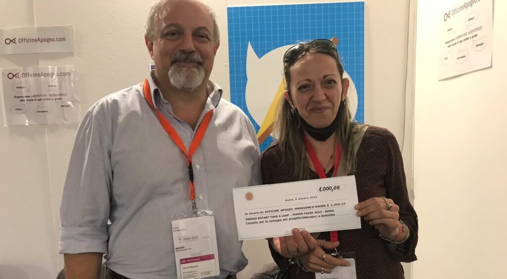 Il Premio Rotary Take a Leap è stato assegnato a i quattro Maker che si sono distinti nell’ambito della Manifestazione Maker Faire Rome – tra le candidature pervenute attraverso la selezione della “Call for Maker 2022” – per innovazione, creatività e potenzialità di sviluppo, con particolare riguardo alle finalità sociali. I vincitori sono stati scelti coerentemente alle aree di intervento selezionate dal Premio (Costruzione della pace e prevenzione dei conflitti; Prevenzione e cura delle malattie; Acqua, servizi igienici e igiene; Salute materna e infantile; Alfabetizzazione e educazione di base; Sviluppo economico comunitario; Tutela dell’ambiente).