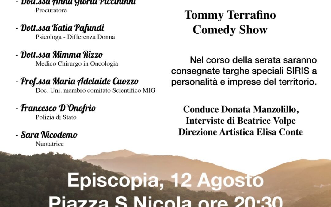 Nel corso della serata verranno inoltre consegnate targhe speciali “SIRIS” a personalità e imprese del territorio, in riconoscimento del loro impegno per la crescita culturale e sociale della Basilicata.