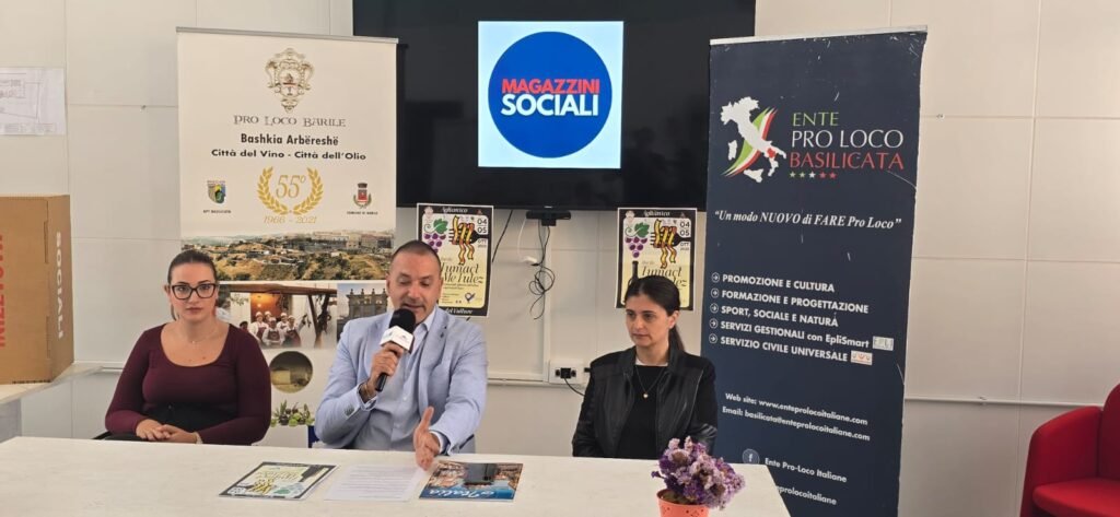 Presentato a Potenza presso Magazzini Sociali il programma della 29 edizione della Sagra d’Eccellenza Tumact Me Tulez e Festival dell’Aglianico del Vulture e dei prodotti tipici. L’evento enogastronomico promosso dalla Pro Loco Barile Aps e realizzato con il sostegno del Comune di Barile, dell’Apt Basilicata, dell’Ente Pro Loco Italiane Aps, del Parco naturale regionale del Vulture e della Regione Basilicata Patrimonio Culturale Intangibile fondi Poc 2014 – 2020 Po Fesr, punta alla valorizzazione del piatto tipico arbereshe “Tumact Me Tulez” iscritto nell’elenco Pat -prodotti agroalimentari della tradizione, del vino Aglianico del Vulture Dop e del patrimonio storico monumentale barilese. Per Valentina Loponte Presidente Io Potentino Magazzini Sociali “un piacere accogliere la conferenza stampa nei nostri spazi segno di una sempre rinnovata collaborazione con Ente Pro Loco Basilicata per i progetti di Evento a spreco zero e di sensibilizzazione dei territori rispetto all’economia circolare”. “La Sagra Tumact Me Tulez (tagliatelle con la mollica) che si pronuncia tumaz ma tugl in programma da sabato 4 a domenica 5 ottobre 2025 tutta la giornata per le vie del centro storico, tra le più longeve della Basilicata, ha ottenuto negli anni scorsi il prestigioso marchio di qualità “Sagra d’Eccellenza” dalla Rete Associativa di Terzo Settore Ente Pro Loco Italiane Aps – dichiara Rocco Franciosa Presidente Pro Loco Barile – rappresenta una straordinaria occasione per promuovere le tradizioni arbereshe, i prodotti tipici locali, l’artigianato artistico locale, i caratteristici monumenti come la Fontana dello Steccato del 1700 e il Palazzo dell’Orologio del 1600 presenti dove si svolgeranno la degustazione del piatto tipico Tumact Me Tulez e la cantina dei vini Aglianico del Vulture di Barile con l’Ais Basilicata e i concerti con le esibizioni musicali di numerosi artisti lucani”. Tante le iniziative culturali previste a partire dalle ore 16 di sabato 4 ottobre con l’inaugurazione della mostra fotografica “Polaroid” di Rocco Carnevale presso la Pro Loco Barile e la mostra dei pittori barilesi Salvatore Malvasi, Antonio Voloninno, Pasquale Buttarini e Maria Fuccillo nell’atrio del Comune di Barile dove sarà presentato il progetto di promozione digitale innovativo realizzato da Brucomeladesign “Tra Pietre e Pixel – Il Parco Urbano delle Cantine in realtà virtuale”. In Largo Garibaldi dalle ore 18 la Fidas donatori sangue Barile promuove uno spettacolo per bambini con Wonderland Animation e gonfiabili gratuiti per tutti. Alle ore 19 inaugurazione della Sagra con l’esibizione del gruppo folk Kroj dell’Associazione Intercultura di Barile ed esibizione musicale del gruppo folk Lucanicus in Piazza Dalla Chiesa e alle ore 21 il concerto di Pietro Cirillo Officini Popolari Lucane in Largo Garibaldi con spettacolo pirotecnico a cura di Mister X. A seguire degustazione di sigari e grappa di Aglianico del Vulture della Cantina di Barile in Piazza Dalla Chiesa. Mentre domenica 5 ottobre dalle ore 9 previste l’escursione “L’Anello della Pozzolona nel Parco del Vulture” promossa dal Ceas Vulture con la guida ambientale escursionistica Leonardo Mecca, le Passeggiate a Cavallo nel Parco del Vulture a cura di Saturday Ranch e La Passeggiata nel Parco Urbano delle Cantine dove Pier Paolo Pasolini ha girato le scene più importanti del Vangelo Secono Matteo e per le vie del centro storico a cura della Guida Turistica Rossana Saracino. Dalle ore 11 in Piazza Dalla Chiesa in programma il Seminario e Cooking Lab promosso da Oprol, Informatore Agrario, Associazione nazionale Città dell’Olio, Pro Loco Barile, Club per l’Unesco del Vulture e Unione Cuochi Lucani su la Dieta Mediterranea e presentazione del progetto “Le Vie dell’Olio”. Alle ore 13 pranzo in piazza allietati dalla musica dei maestri Giovvanni e Antonello, fisarmonica ed organetto. Nel pomeriggio di domenica 5 ottobre prevista la presentazione del volume di Antonio Avenoso “Un manoscritto ritrovato” alle ore 17 presso la sala consiliare del Comune di Barile. Alle ore 18 in largo Garibaldi presentazione del progetto nazionale “Siamo tutti nella Rete” a cura di Supereroi Aps contro il bullismo, la violenza e il cyberbullismo e gonfiabili gratuiti per tutti i bambini. Dalle ore 19 apertura stand gastronomici con degustazione del piatto tipico arbershe Tumact Me Tulez preparato dagli chef Daniele Bracuto e Franco Nastasia e degustazione dei vini Aglianico del Vulture a cura dell’Ais Basilicata con esibizione musicale di Laura Cefola e Giuseppe Leone alla chitarra, dei Ragazzi con l’Organetto e dei Musici della Pro Loco Federico II di Melfi per le vie del centro storico. Alle ore 21 in largo Garibaldi in programma il concerto musicale degli Accipiter con spettacolo pirotecnico a cura di Mister X.