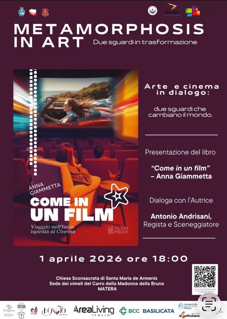 Protagonista della serata sarà la presentazione del libro “Come in un film”, Altrimedia Edizioni, di Anna Giammetta, un viaggio nell’Italia ispirato al cinema, capace di evocare atmosfere, emozioni e paesaggi attraverso una narrazione coinvolgente e visiva.