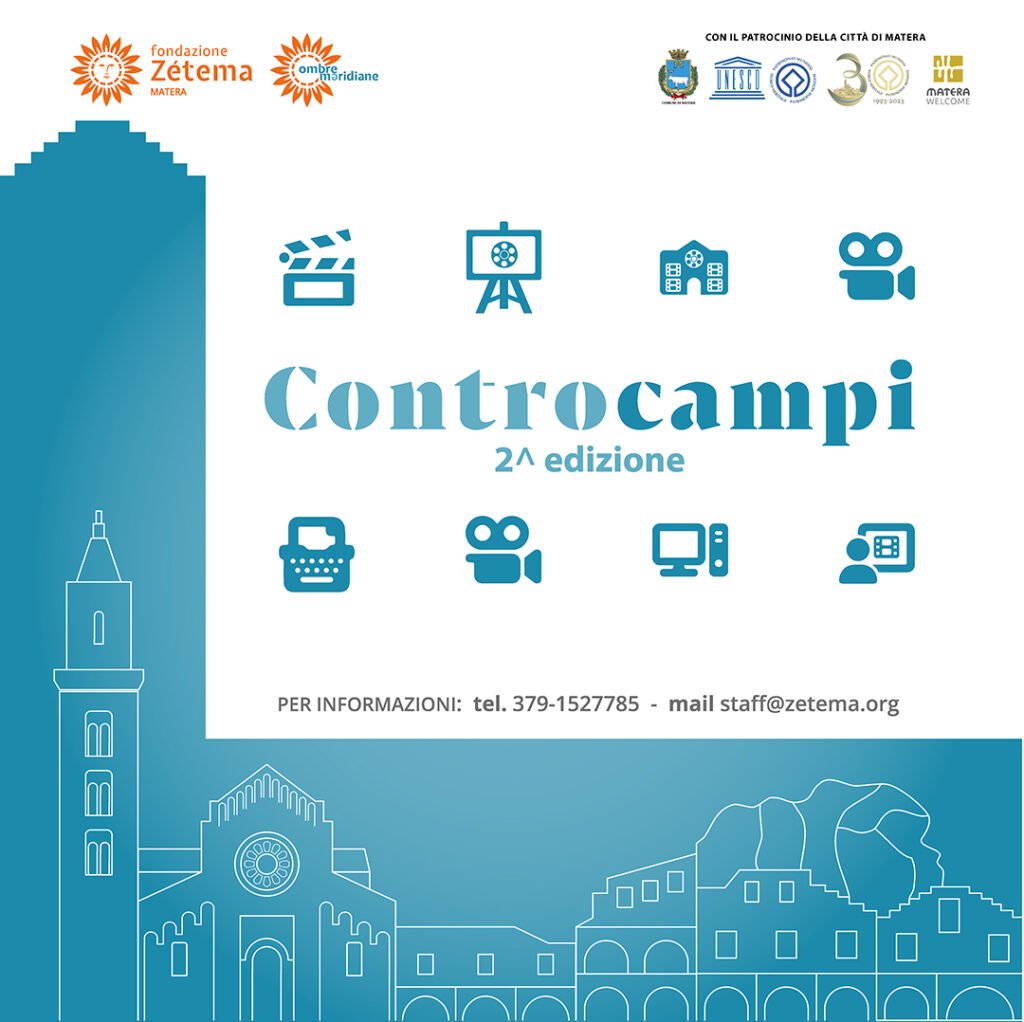 Dopo il grande successo dello scorso anno, ritorna, dal 1° ottobre, il progetto Controcampi, giunto alla sua seconda edizione. Si tratta di un ciclo di eventi aperti al pubblico organizzato dalla Fondazione Zétema con il patrocinio della Città di Matera.