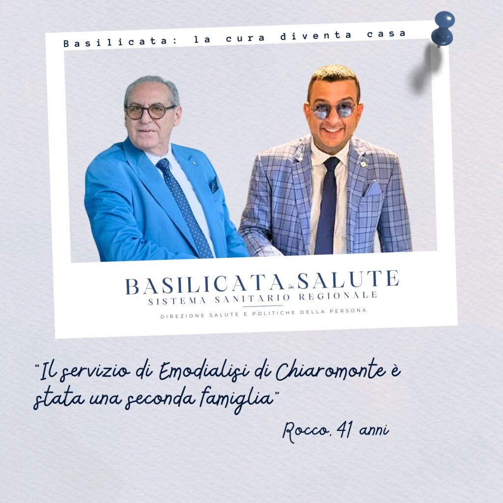 È da storie come quella di Rocco che nasce il senso più autentico di cura. Non un sistema astratto, ma una rete viva fatta di relazioni, ascolto, attenzione al benessere psicofisico. Il suo sorriso, oggi, è il simbolo di una battaglia culminata con un trapianto di reni a Bari. C’è una Basilicata che spesso resta lontana dai riflettori, ma che ogni giorno cura, accoglie e accompagna con amore e dedizione, non si è pazienti ma compagni di un percorso. È una Basilicata fatta di operatori sanitari, volontari, assistenti. Francesco Delfino, direttore del servizio di Emodialisi di Chiaromonte ribadisce il prioritario ruolo della prevenzione e di uno stile di vita sano: «a tutt’oggi, purtroppo, la patologia renale non è ben conosciuta, i cittadini in passato non sono stati adeguatamente edotti sui rischi legati ad una irregolare e non bilanciata alimentazione unitamente all’uso improprio dei farmaci (fans e antibiotici), che determinano nel tempo l’insorgenza dell’insufficienza renale ed una progressione della malattia nei pazienti già affetti da tale patologia. Il nostro intento – spiega – è e sarà sempre quello di fare prevenzione ed informazione. A tal riguardo quest’anno il Centro di Nefrologia e Dialisi di Chiaromonte ha partecipato alla Giornata Mondiale del Rene, il cui scopo principale è stato quello di sensibilizzare sulle modalità e le cause che portano all’insorgenza della malattia renale. Durante l’evento è stata effettuata una anamnesi accurata, valutata la pressione arteriosa ed effettuato anche l’esame delle urine. Abbiamo poi relazionato sulla possibile insorgenza di una insufficienza renale, di ipertensione arteriosa e di infezione delle vie urinarie».