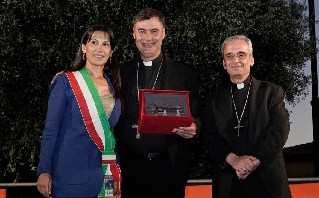 Tra i momenti più toccanti della giornata, la consegna simbolica delle chiavi della città da parte del Sindaco Felicetta Lorenzo, avvenuta in una piazza gremita e commossa. Un gesto carico di significato, accompagnato dalle parole del Sindaco: “La sua presenza qui rappresenta per noi un segno concreto di speranza. Le chiavi sono il simbolo della massima fiducia e appartenenza: è il nostro modo per dirle ‘questa è casa sua’. Un gesto di apertura, accoglienza e condivisione di responsabilità”.