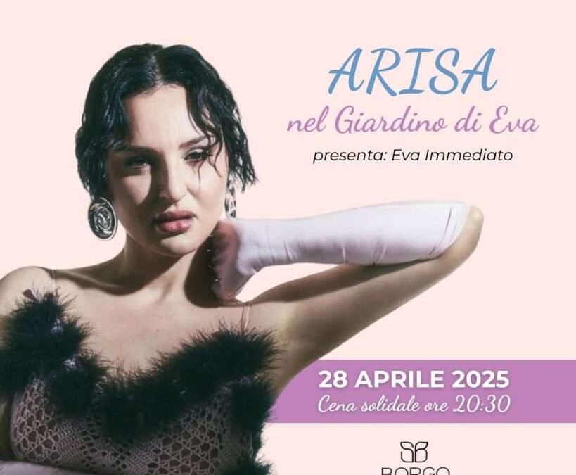 Lunedì 28 aprile 2025, alle ore 20:30, presso il Borgo San Barbato Extra Ordinary Resort Spa & Golf, si terrà l’evento benefico “ARISA nel Giardino di Eva”, promosso dall’Associazione Arcipelago Eva O.D.V. in collaborazione con l’IRCCS CROB di Rionero in Vulture e Il Marateale, con il sostegno della Lucana Film Commission e il patrocinio della Regione Basilicata e del Consiglio Regionale della Basilicata.