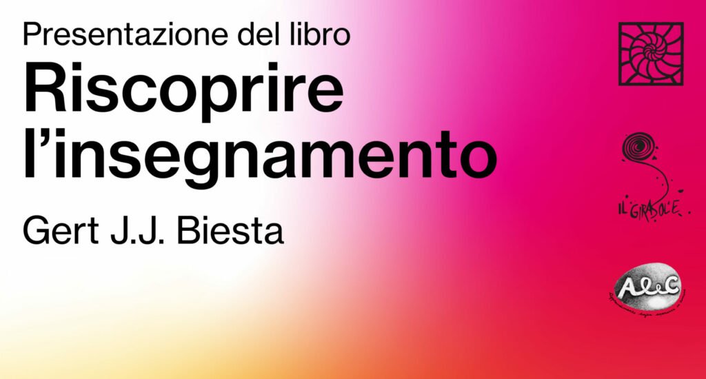 Associazione “Il Girasole” Onlus, Associazione “AleC” e “La Lampa – Circolo Arci” promuovono la presentazione del libro Riscoprire l’insegnamento di Gert J.J. Biesta, Raffaello Cortina Editore, (2022), edizione italiana a cura di Francesco Cappa e Paolo Landri, traduzione dall’inglese di Vincenzo Santarcangelo.