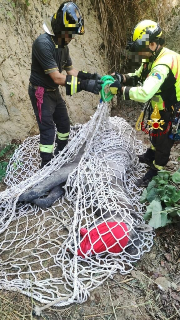 Sulla Strada Provinciale Montescaglioso Scalo, nella mattinata, intorno alle ore 09.15, la squadra dei Vigili del fuoco di Matera, supportata dal nucleo S.A.F. (Spelo-Alpino-Fluviale) e dagli operatori dall’elicottero 412, Drago 69 VV.F. di Pontecagnano (SA), per un totale di 11 unità, è intervenuta per il recupero di un cavallo caduto in impluvio.