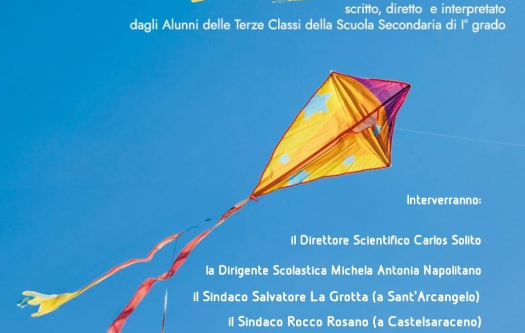 La presentazione del mediometraggio “I COLORI DEL VENTO”, con la Dirigente Scolastica Michela Antonia Napolitano e il Direttore Scientifico Carlos Solito, sarà aperta al pubblico domenica 3 settembre. A Sant’Arcangelo, ore 17:00, alla presenza del Sindaco Salvatore La Grotta, presso la Sala Polifunzionale; a seguire, a Castelsaraceno, ore 19:00, alla presenza del Sindaco Rocco Rosano, presso la Sala Convegno del Museo della Pastorizia.