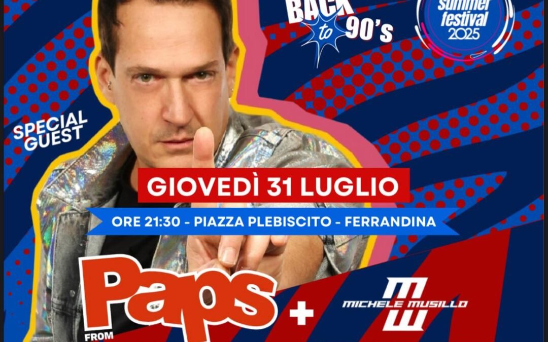 Inizia così il tour di 4 appuntamenti tra musica, identità ed intrattenimento, con una serata inaugurale che vedrà protagonista il format “Back to 90’s”, con un ospite d’eccezione: Paps del celebre duo Paps’n’Skar, simbolo della dance anni Novanta.