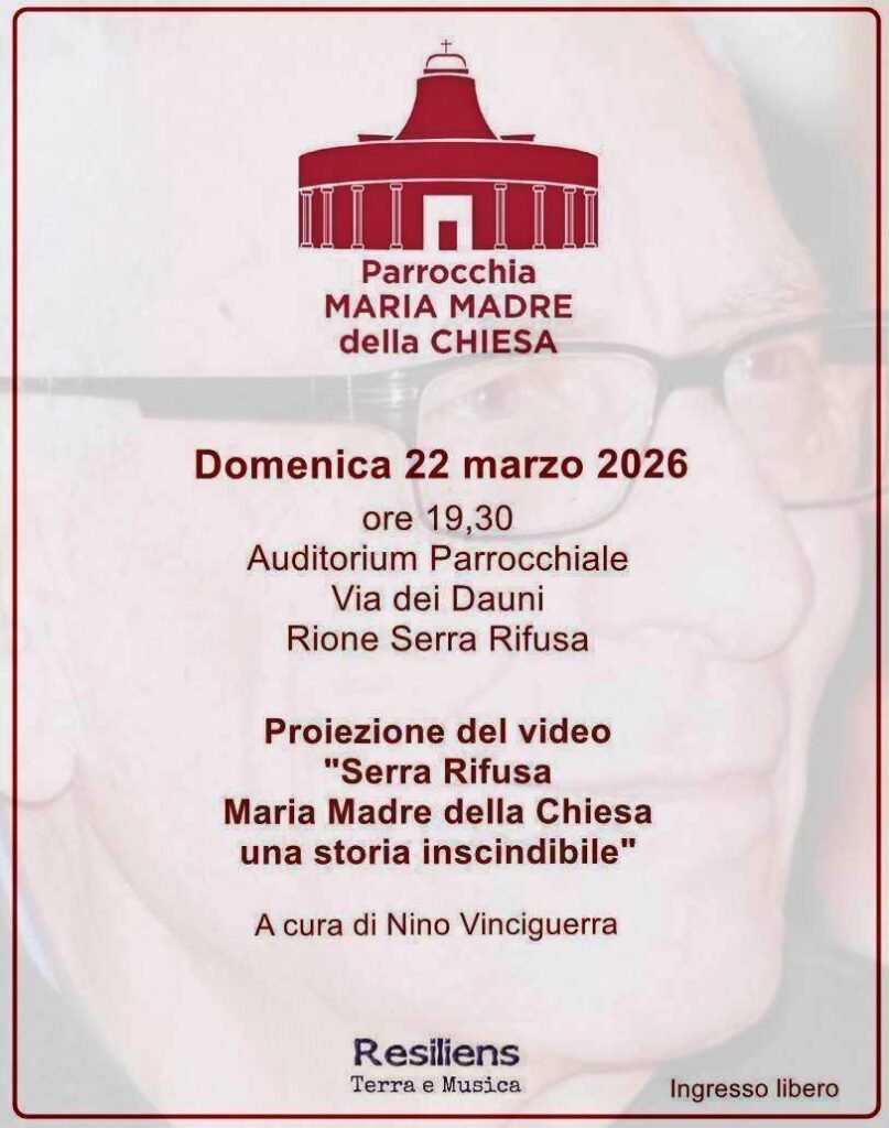 Si svolgerà domenica 22 marzo alle 19.30 a Matera nell’Auditorium parrocchiale di Serra Rifusa, in via dei Dauni, la proiezione del video “Serra Rifusa, Maria Madre della Chiesa. Una storia inscindibile” realizzato dallo storico e intellettuale materano Nino Vinciguerra.