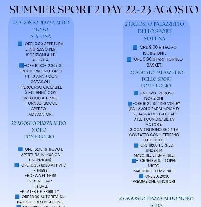 New Libellula Dance è lieta di presentare “SUMMER SPORT 2 DAYS”, un evento all’insegna dello sport e del benessere che si terrà il 22 e il 23 agosto in Piazza Aldo Moro ad Irsina, con inizio alle ore 10:00.