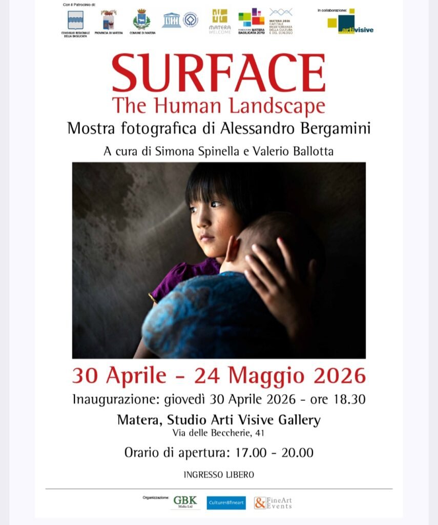 Giovedì 30 aprile alle ore 18.30 nello spazio espositivo dello Studio Arti Visive a Matera in via delle Beccherie n. 41 è in programma l’inaugurazione della mostra fotografica “SURFACE – The Human Landscape” di Alessandro Bergamini.
