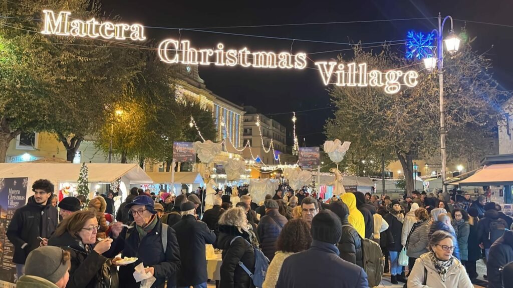 Taglio del nastro nel pomeriggio per il Matera Christmas Village, evento promosso dall’Associazione Italia Eventi presieduta da Giuseppe Lupo. Patrocinato dal Comune di Matera e dall’UNOE Unione Nazionale Organizzatori di Eventi, per la terza edizione porta nella Città dei Sassi in Piazza Vittorio Veneto, mercatini, spettacoli, attività laboratoriali e degustazioni.