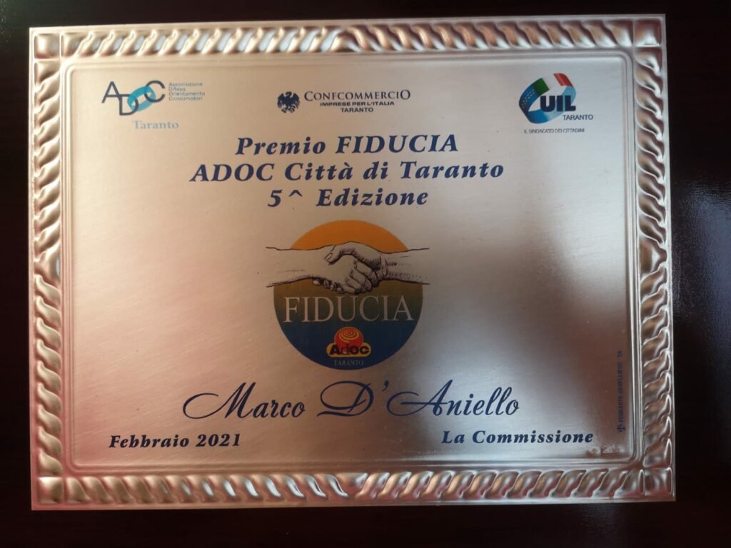 Ieri presso la sala Confcommercio Taranto ci sono state le consegne dei riconoscimenti “Premio Fiducia ADOC 2021” a tre giovani eccellenze (Lorenzo Musumeci, Marco D’Aniello e Federico Quaranta), ragazzi che ci regalano speranza e fiducia nel futuro e che rappresentano un esempio di tenacia, volontà ed impegno.