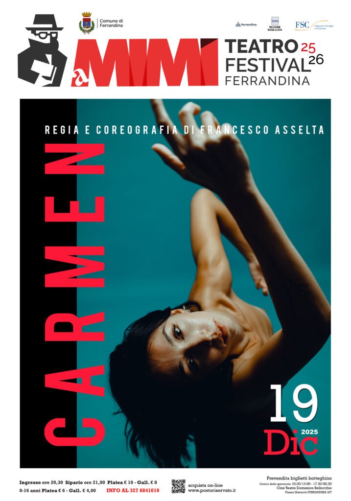 Venerdì 19 dicembre, Teatro Festival Ferrandina- A Mimì prosegue con lo spettacolo di danza “Carmen” della Sinopia Dance Company, con regia e coreografia firmate da Francesco Asselta.