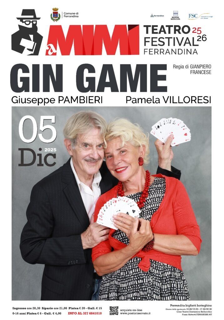 Venerdì 5 dicembre, al Cineteatro Bellocchio, il Teatro Festival Ferrandina – A Mimì presenta uno degli appuntamenti più attesi della rassegna: GIN GAME, la celebre commedia di Donald L. Colburn, vincitrice del Premio Pulitzer per la drammaturgia.