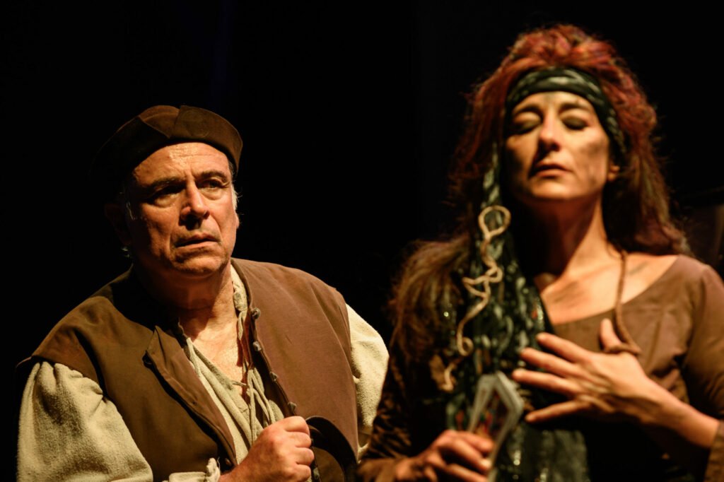Sette quadri, un prologo e un epilogo. È un viaggio nel teatro, quello di Molière in primo luogo, ma non soltanto. È anche un viaggio nel tempo quello del Seicento, un secolo pieno di guerre, epidemie, grandi tragedie ma anche di profonde intuizioni e illuminazioni che non riguardano solo “quel tempo”. Ed è anche il viaggio, reale e immaginario, di Oreste Bruno, da Nola, e la sua famiglia, che è poi anche la sua Compagnia viaggiante di teatranti: è la tipica “carretta dei comici” tanto cara sia a Peppino che a Luigi De Filippo. È il viaggio verso Parigi, verso il teatro, verso Molière. Ma anche una fuga: dalla peste, da una terribile epidemia che ha costretto i Nostri a cimentarsi in un avventuroso viaggio verso un sogno, una speranza o solo la salvezza. Gli incontri durante il viaggio, sorprendenti ma non tutti piacevoli, l’avvicinamento anche fisico a Parigi, al teatro di Molière, la forte connessione tra il mondo culturale e teatrale della Napoli di quel tempo (con Pulcinella che diventa Scaramouche) con quella francese, la pesante eredità del pensiero di uno zio prete di Oreste Bruno, e la morte in scena dello stesso Molière poco prima del loro arrivo a Parigi, renderanno davvero unico il viaggio di tutta la “Compagnia di famiglia” commedianti d’arte ma soprattutto persone “umane”, proprio come la grande commedia del teatro, dove “tutto è finto, ma niente è falso”.