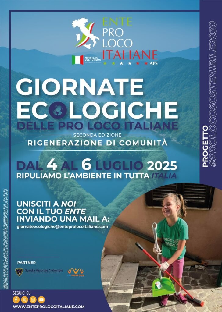 Dal 4 al 6 luglio 2025 tornano le Giornate Ecologiche delle Pro Loco promosse dalla Rete associativa Terzo Settore Epli – Ente Pro Loco Italiane Aps su tutto il territorio nazionale. Tanti gli appuntamenti anche in Basilicata – fa sapere il Presidente regionale Ente Pro Loco Basilicata Aps e consigliere nazionale Ente Pro Loco Italiane Aps