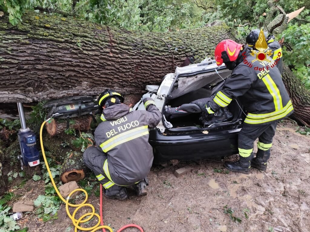 La squadra dei Vigili del Fuoco di Matera, della Sede Distaccata di Ferrandina, è intervenuta immediatamente sul luogo dell’accaduto, un’area attrezzata per pic-nic. I soccorritori hanno trovato il veicolo schiacciato dal tronco dell’albero.