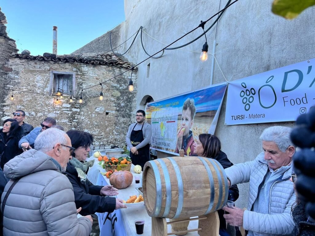 La mattinata è proseguita con la degustazione dei sapori locali: peperoni cruschi, focacce, agrumi del territorio e vini delle Cantine D’Affuso. Lo show cooking della chef Giuliana Vitarelli, con la preparazione dei “Raschatelli ceci e baccalà con mollica al peperone crusco e arancia staccia di Tursi”, ha suscitato grande interesse e partecipazione.