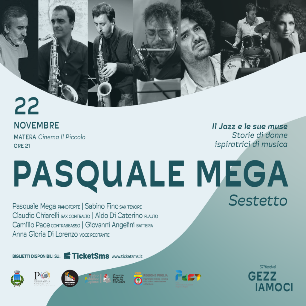 Il Jazz e le sue Muse è il tema del quarto appuntamento autunnale del Gezziamoci, in programma a Matera, venerdì 22 novembre, alle 21, nel cinema Il Piccolo, in via XX Settembre, per iniziativa dell’Onyx Jazz Club. Il Jazz Festival della Basilicata, alla sua 37ª edizione, ospita Pasquale Mega Sextet. Con Anna Gloria Di Lorenzo, voce recitante, la formazione musicale composta da Pasquale Mega, pianoforte, Sabino Fino, sax tenore, Claudio Chiarelli, sax contralto, Aldo Di Caterino, flauto, Camillo Pace, contrabbasso, e Giovanni Angelini, batteria, propone un repertorio intriso di storie di donne ispiratrici di musica. Figure femminili reali o immaginarie, sono un motore potente, ma silenzioso, sempre presente anche quando risultano invisibili, in grado di alimentare idee e creatività. Metaforicamente hanno assunto le sembianze di divinità per aver catturato la sensibilità o essere state il pensiero ricorrente di artisti che le hanno cercate, amate, sognate. Ad esse si sono rivolte musicisti, scrittori, scultori, poeti, pittori, danzatori e virtuosi di ogni forma d’arte, a volte in maniera in esplicita, altre volte quasi inconsapevolmente, prima di dare origine ad autentici capolavori. Innumerevoli nella cultura mondiale gli esempi di grandi autori che sono stati guidati da passioni e sentimenti per Muse ispiratrici che hanno stimolato il loro estro e la loro inventiva tradotti in opere memorabili.