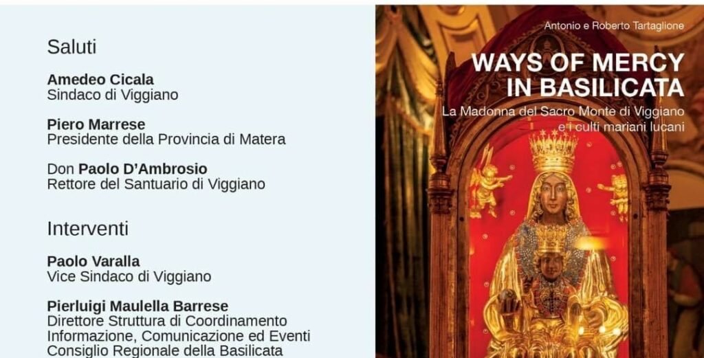 Giovedì 25 Maggio alle ore 19 presso il Teatro comunale “Francesco Miggiano” in via Roma, 30 a Viggiano sarà presentato il volume “Ways of Mercy in Basilicata”, edito da Graficom srl ed incentrato sulla Madonna del Sacro Monte di Viggiano ed i culti Mariani lucani.